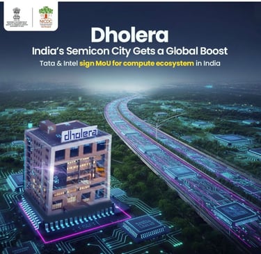 The Tata Factor: Construction is in full swing for the ₹91,000 crore Tata Semiconductor Plant, India's first mega chip-fab, which is already attracting a massive ecosystem of global suppliers.